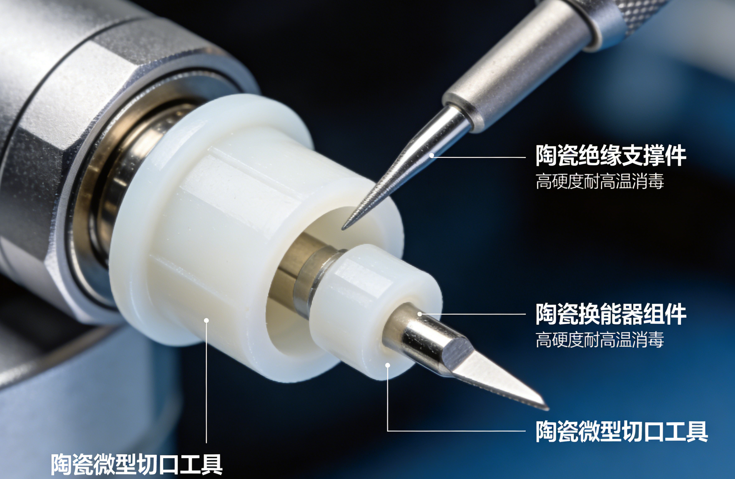 Sisäänrakennetussa tähystimessä, ultraääni-osteotomissa ja mikroantureissa keraaminen osa kantaa eristävää tukea tai anturikokoonpanoa. Sen korkea kovuus mahdollistaa tarkasti terävien ja valmistettujen mikromuottien luomisen menettämättä kovuutta korkean lämpötilan steriloinnissa, kuten metallityökaluissa. 4. Kuvantamisen diagnostiikkalaitteiden komponentit
